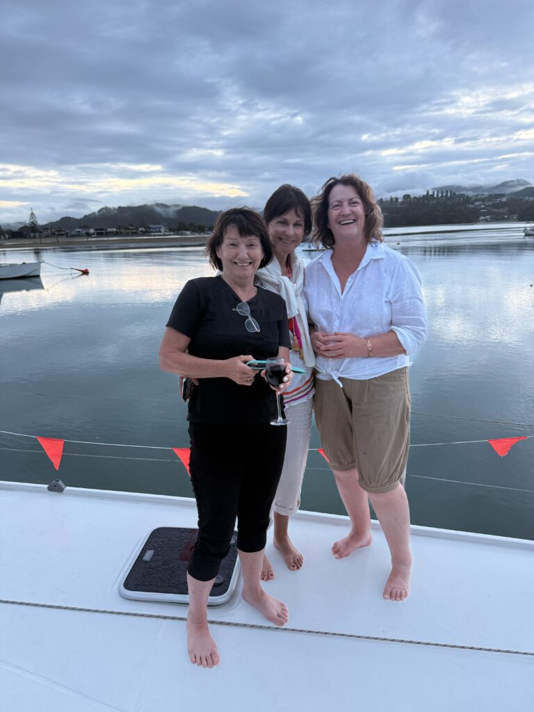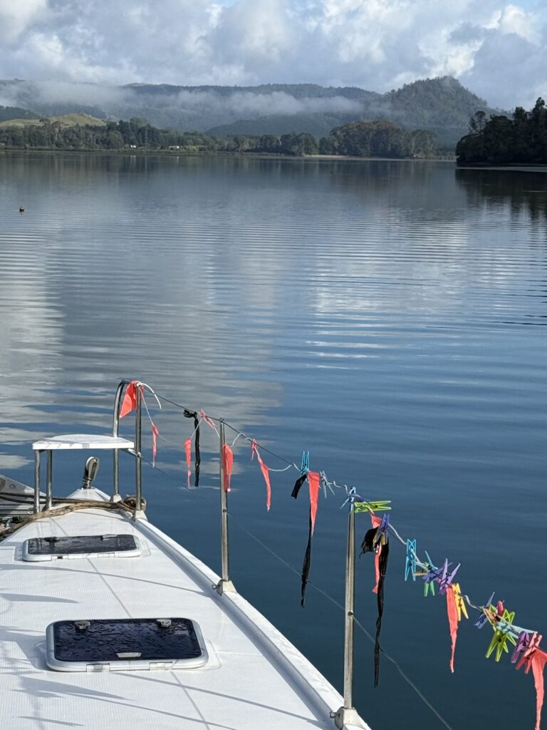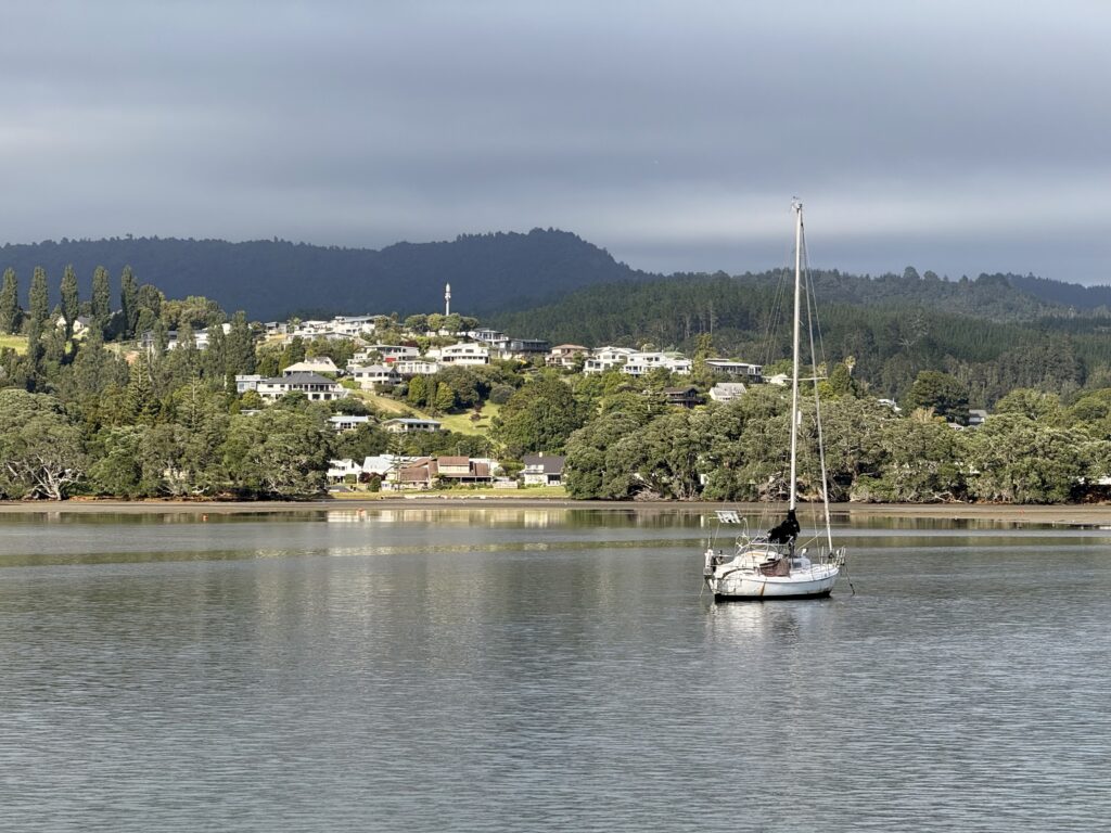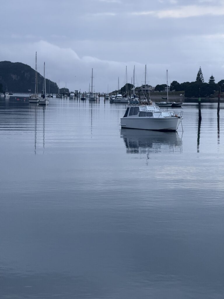 Picked up at the jetty by our hosts, followed by a short dinghy ride to the otherside of the harbour, to a spot euphemistically called “The North Shore” beyond the channel, we boarded their substantial yacht, where we settled in for 2 nights of songbird, sloshing currents, ever-changing views, laughter and cards.
