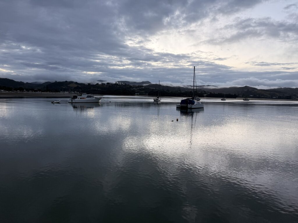On this particular weekend, we were tucked away on the west side of the township, where a marina of various vessels is set against a backdrop of thick green bush and hills, dotted with a number of various baches and holiday homes.